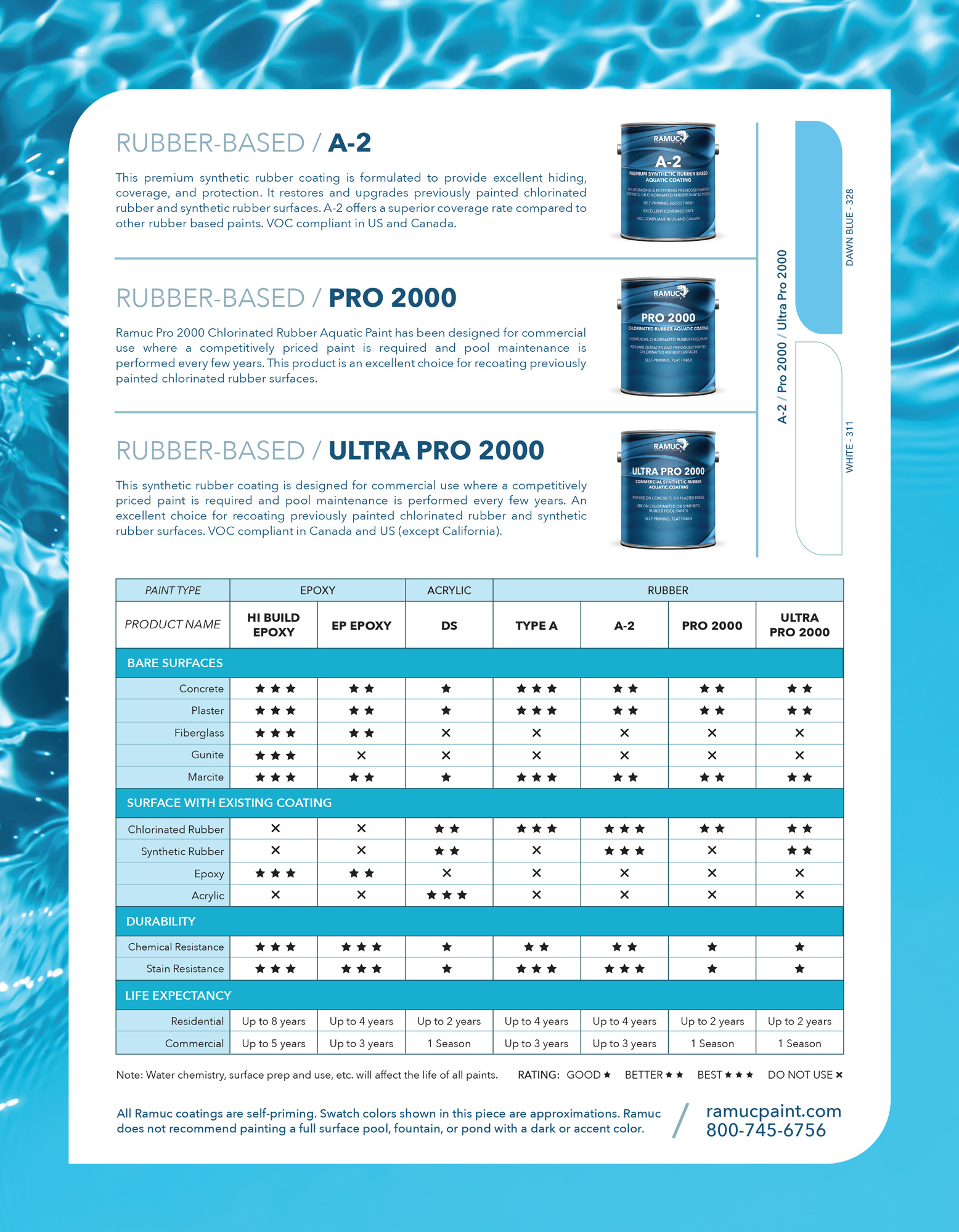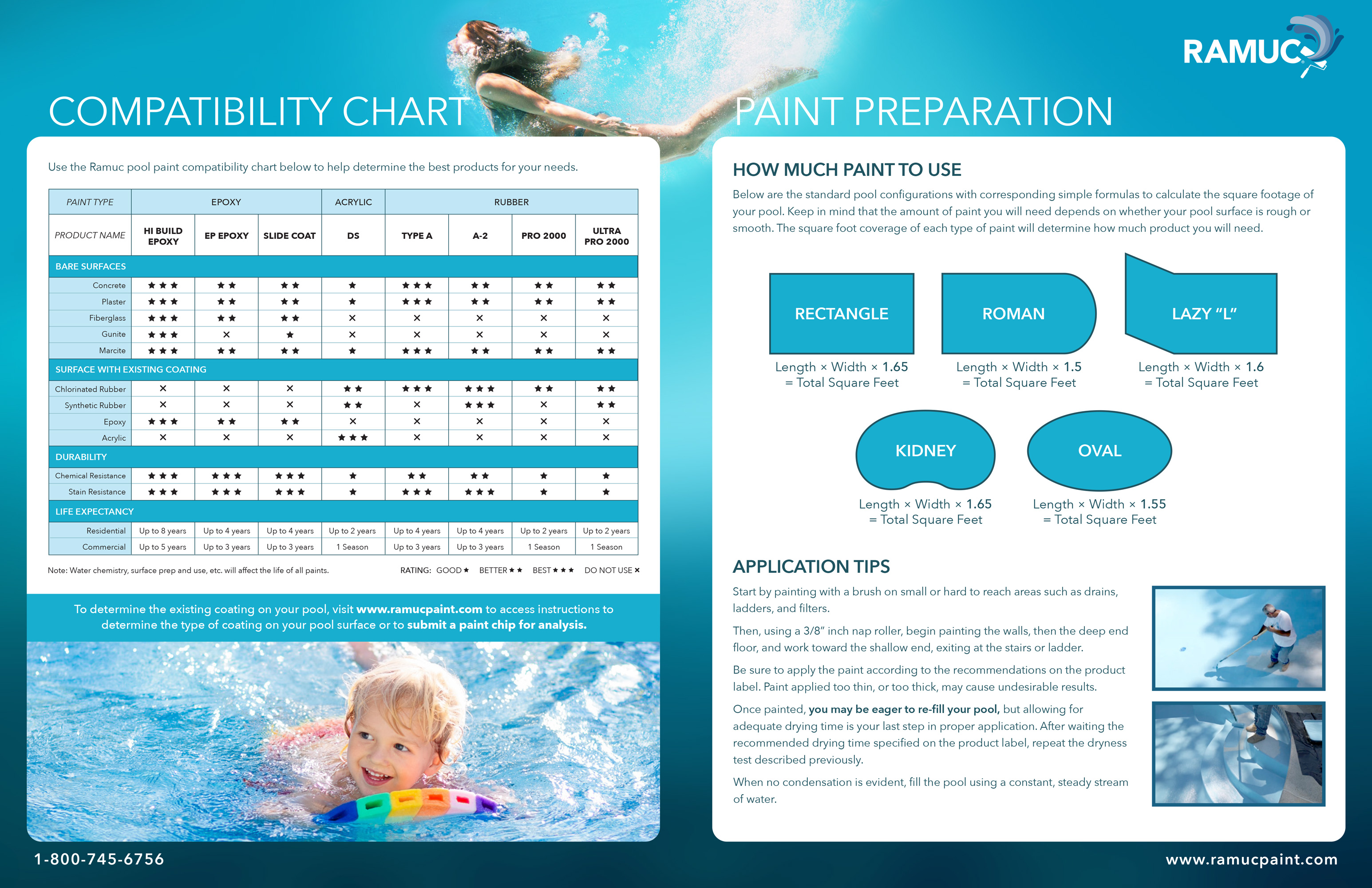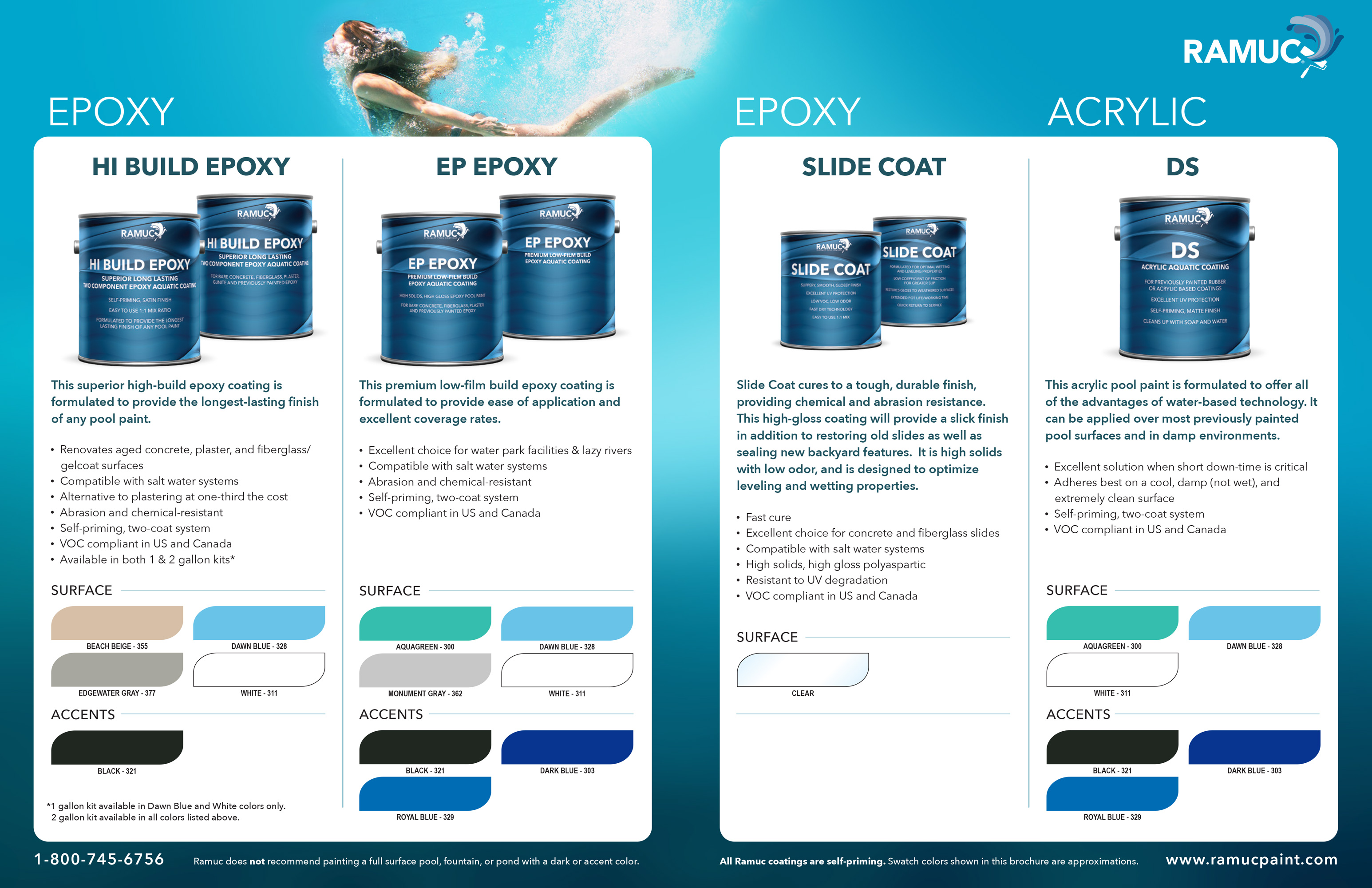 Family product brochure created for a specialty aquatics coating business.